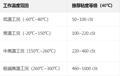 - 高壓重載(≥20MPa,衝擊載荷):選高粘度(320~1000 cSt)+ 極壓添加劑(如 PFPE + 二硫化鉬),如高壓閥門、重型機械關節,防止油膜破裂導致幹磨。