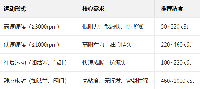 - 匹配運動形式和壓力:根據轉速、載荷選擇粘度等級;