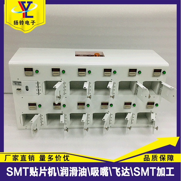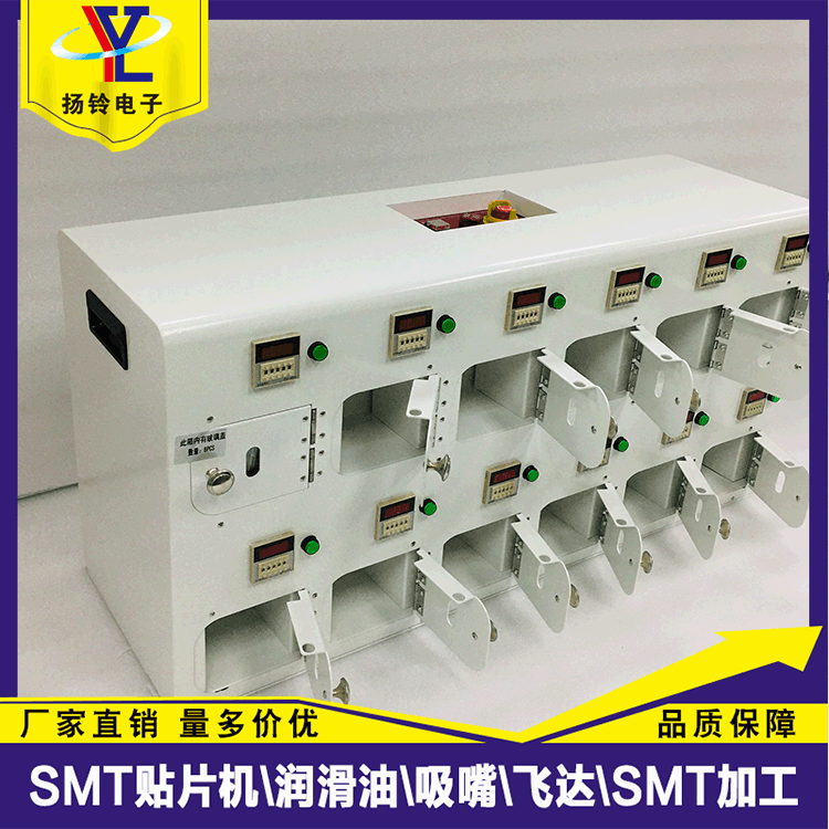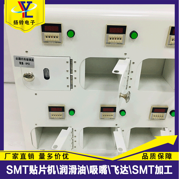 3、每罐錫膏放置槽都有獨立的時間操控,設定好時間,錫膏倉槽會自動鎖死,未到定時時間內,倉槽門不能打開,當到達設定回溫時間後,倉槽會自動開鎖。